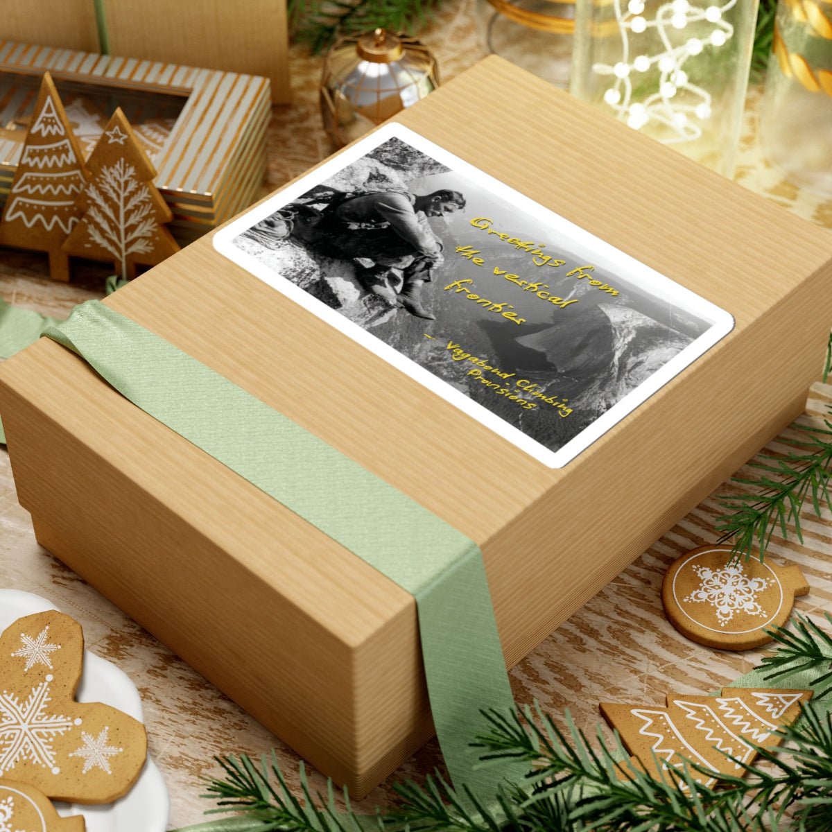 Bring a piece of climbing history wherever you go with the “Greetings from the Vertical Frontier” Sticker from Vagabond Climbing Provisions. Featuring a retro black-and-white photograph with bold yellow script, this design pays tribute to the pioneers of the climbing lifestyle.