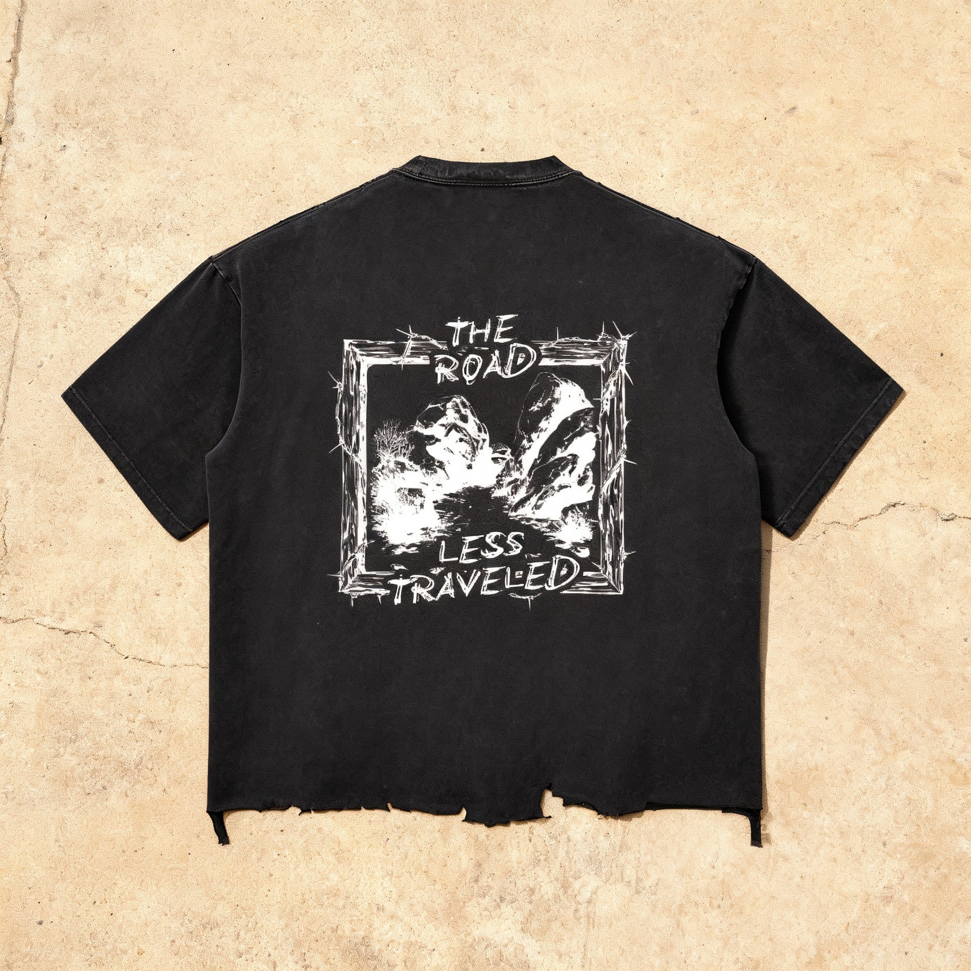 Road Less Traveled - Snow Wash Raw-Hem Boxy Tee