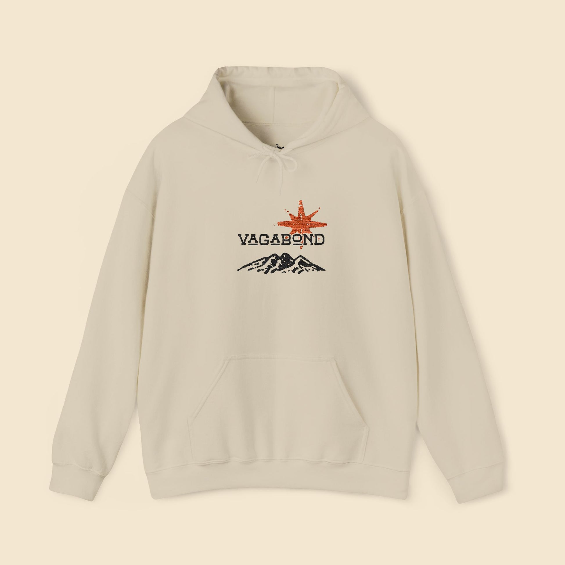 Stay warm, comfortable, and inspired by adventure in the Vagabond Mountain Hoodie. Featuring a bold embroidered mountain design with the Vagabond logo, this hoodie blends retro outdoor aesthetics with durable everyday wear. Crafted from a soft cotton-poly blend that holds warmth while keeping a breathable feel.
